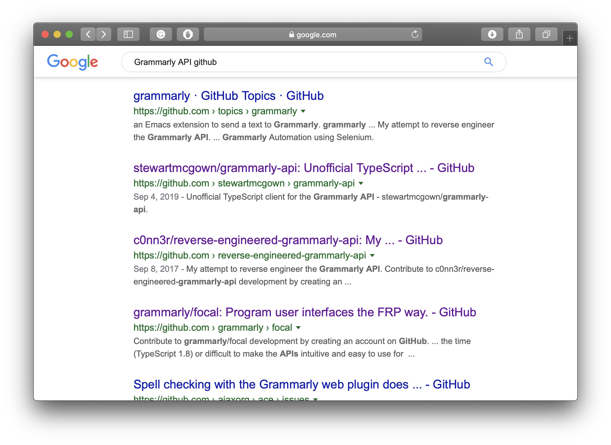 Hence, "Grammarly API Github" — I hit Google again.